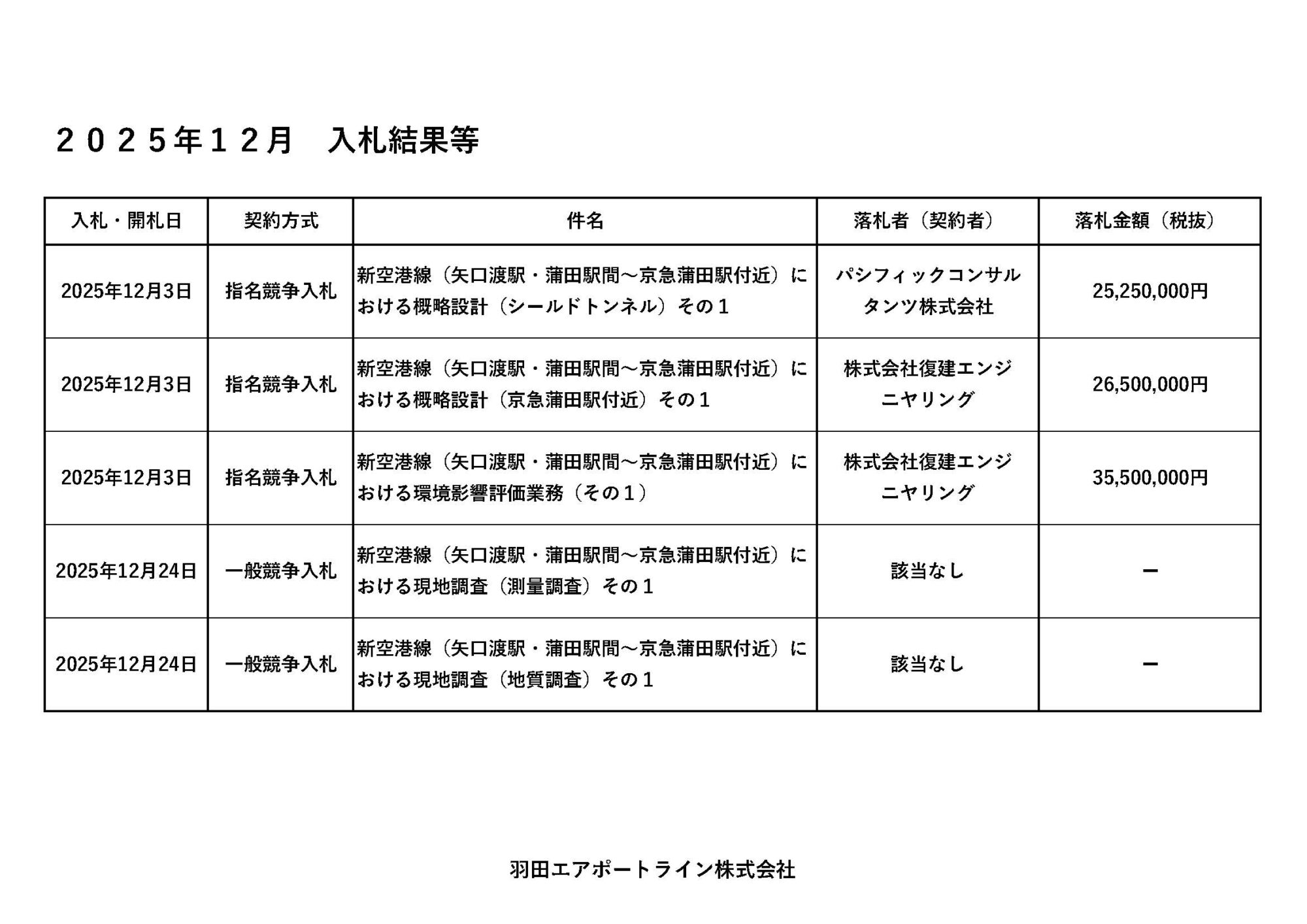 2025年12月分の入札結果等をお知らせいたします
